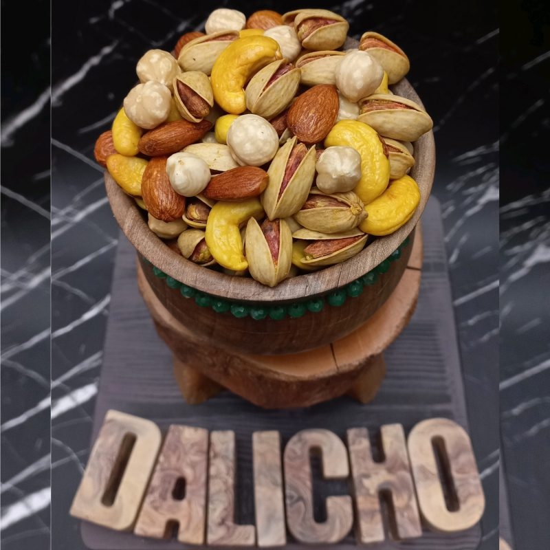 آجیل 4مغز شور با ترکیب پسته باپوست اکبری زعفرانی (یا پسته کله قوچی زعفرانی)، مغز بادام شور درشت، مغز فندق سفید تُرک درشت و بادام هندی زعفرانی درشت تهیه شده که وزن پسته، مغز بادام و بادام هندی هر کدام 280 گرم و وزن مغز فندق 160 گرم است.