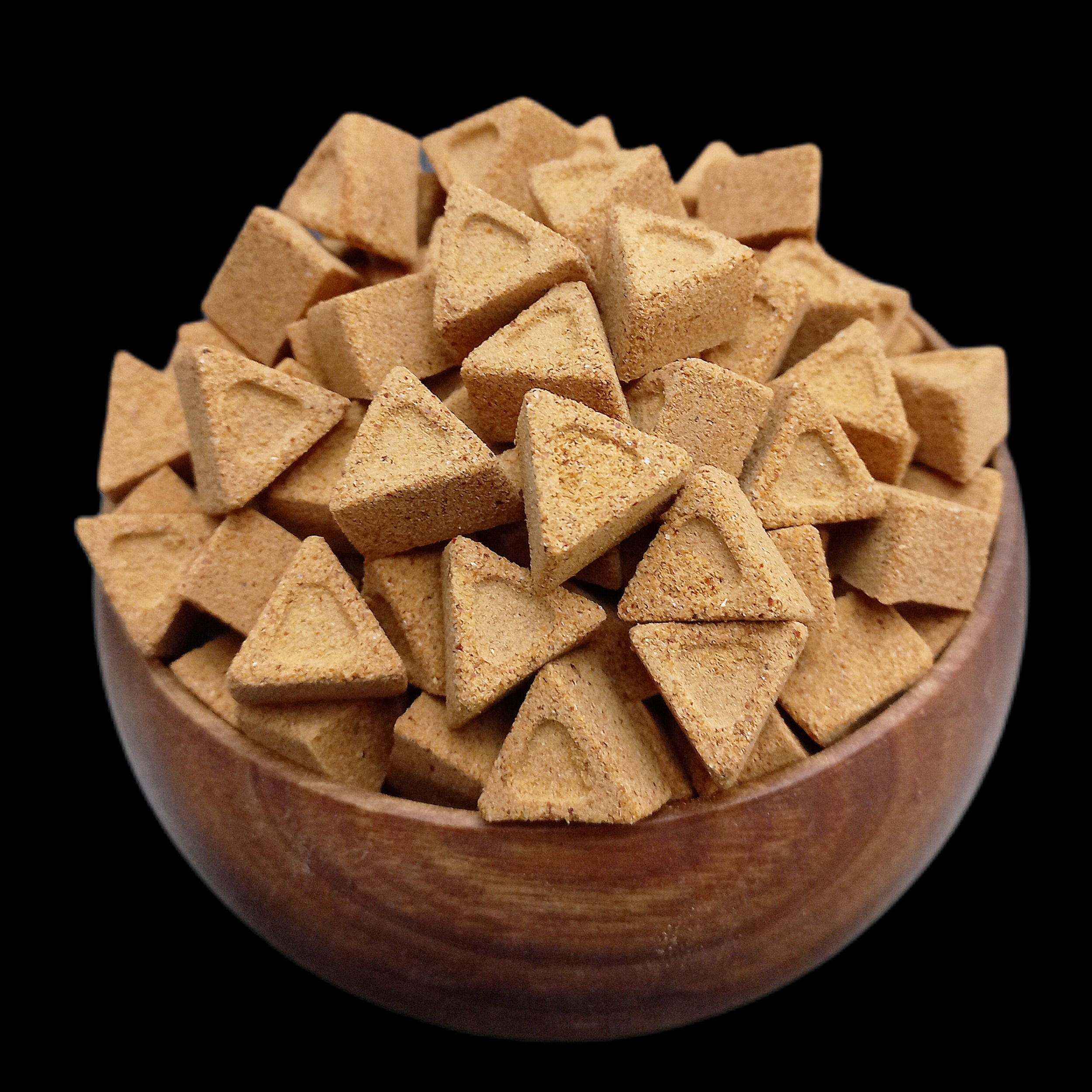 طرز تهیه حبه های سنجد: سنجدها شسته می شوند. آنها را با پوست و هسته آسیاب می کنند. پودر حاصل را الک می کنند. سپس در قالب ریخته و فشرنده می شوند. (بدون هیچگونه افزودنی مانند آرد، شکر و ...)