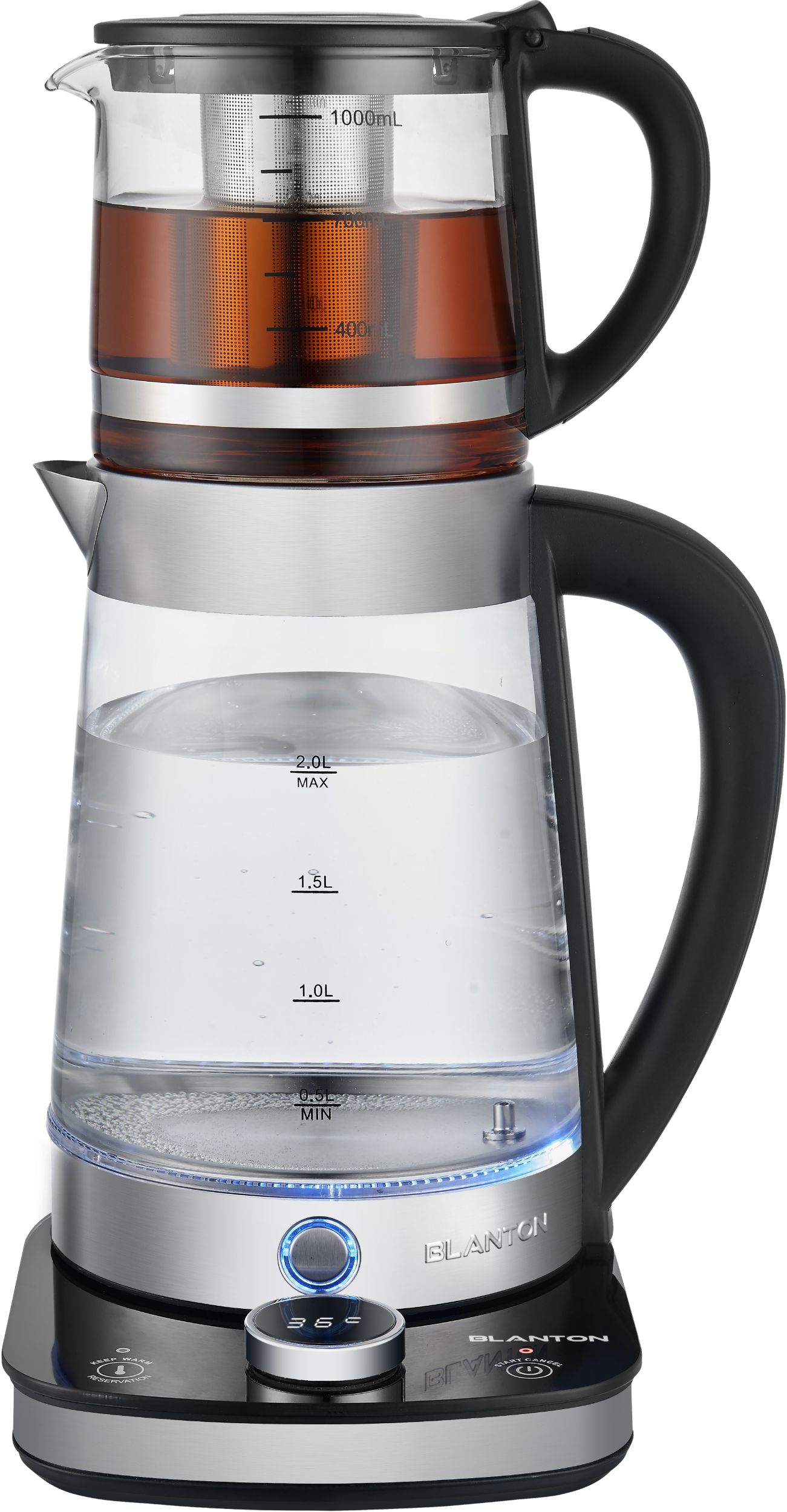 چای ساز روهمی 2000 وات، کتری و قوری پیرکس، کنترلر هوشمند دیجیتال دمای آب کتری، نمایشگر دمای آب داخل کتری، قابلیت تنظیم دلخواه دمای آب کتری، سوئیچ STRIX