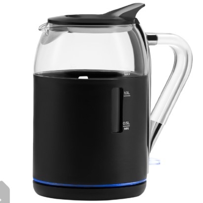 کتری برقی، دارای سوئیچ استریکس، ظرفیت 1.5 لیتر، خاموش کننده خودکار، بدنه پیرکس با نمای پلاستیک مشکی، دارای درب ویژه جهت پرکردن راحت کتری، المنت از جنس استیل، سیستم ایمنی خاموش شدن خودکار در زمان خالی بودن کتری